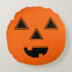 This festive Halloween throw pillow is shown in a black and orange pumpkin face print.
