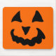 An orange and black happy pumpkin face mousepad. A happy jack-o-lantern mousepad.