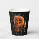 A halloween funny pumpkin jack-o'-lantern in the shape of the letter "P" holding a lamp with a flame.