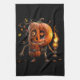 A halloween funny pumpkin jack-o'-lantern in the shape of the letter "P" holding a lamp with a flame.