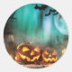 Halloween pumpkins and bats throw pillow classic round sticker