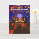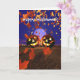 Greeting card with my original artwork of two laughing pumpkins on Halloween night with a full moon and fall leaves. "Happy Halloween" on the front and my customisable verse inside.
