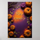 If you are looking for an atypical elegant Halloween illustration, this one is for you. Orange pumpkins on purple background in an explosion of colours ready to be customised.