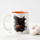 This ceramic coffee mug is shown in a Halloween raven art print.