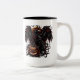 This ceramic coffee mug is shown in a Halloween raven art print.