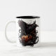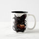 This ceramic coffee mug is shown in a Halloween raven art print.