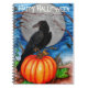 Original painting by Sandra Gale of a large black raven, perched upon a pumpkin beneath the full moon at night. Great design for kids and adults and a fun way to celebrate a spooky and scary Halloween!