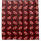 Destei's pattern of cartoon illustrated vampire mouths. The lips of the mouths are red and the teeth including fangs are white. The background colour is burgundy red / dark red.