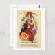 Hallowe'en Red Witch and Black Cat Vintage Postcard