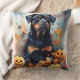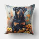 Halloween Rottweiler With Pumpkins Scary Cushion