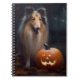 Halloween Rough Collie With Pumpkins Scary Notebook