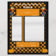 Here is a page to write your favourite Halloween recipes. Has an orange and black background with an orange and black chequered border. Images of scarecrows and jack-o-latterns. A place to write in the ingredients, directions and more. You can either punch holes along the edges or slide the page down in clear sleeves. Matches the other Halloween scarecrow products in this store. Here is the binder that matches:
