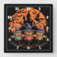 Halloween scarecrow trio beneath an eerie moon square wall clock