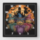 Halloween scarecrow trio under a spooky moonlight square wall clock