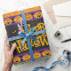Orange and green spider webs background. The centre image has a classic Halloween motif. Subtle and detailed design elements including scary eyes, bats, and a border of Halloween pumpkins. You will love it! All images and artwork ©JESTERFUL store.