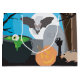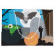 BOO! Don't get scared now. Cute Halloween scene spooking and trick or treating. Ghost, pumpkin, candy, coffin, grave stone, eyeball and lots more scary stuff. The perfect modern contemporary Halloween art design ideal for a Halloween present, birthday gift, Halloween party decor, nursery decor, kids room art, home decor and Halloween apparel.