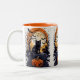halloween scene with black cat with nocturnal moon Two-Tone coffee mug