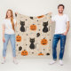 Halloween seamless pattern with black cat and ghos fleece blanket