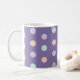 Halloween seamless pattern with polka dots isolated on purple background. Kawaii décor, holiday party. Fun colourful vintage texture