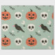 Halloween seamless pattern with ravens, skulls and wrapping paper