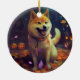 Halloween Shiba Inu With Pumpkins Scary Ceramic Ornament