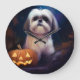 Halloween Shih Tzu With Pumpkins Scary Large Clock