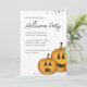 Painted orange whimsical Jack O Lanterns in a pumpkin patch. With a QR code and map icon, add your own URL. These perfect orange pumpkins together with sage green leaves make a great design for any product. Painted or watercolor effects. Halloween party cute pumpkins simple, whimsical jack o'lanterns lantern, spooky scary creepy Halloween, Halloween party invitations, an orange black simple minimalist minimal, modern calligraphy script font, whimsical typography text, smiling jack o'lanterns lanterns, lanterns cute pumpkins happy Halloween, October fall autumn party invites