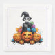 Colourful one of a kind Halloween napkin with a creepy skeleton sitting in a pile of pumpkins. The pumpkins are different sizes and colours. Perfect for a Halloween party.