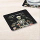 Halloween Skeleton Haunted Forest Black Square Paper Coaster