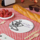 Party paper plate shown in white with a Halloween skeleton print. Shown is 7" size. Customise this plate or buy as is.