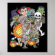 Halloween Skeleton Zombie Riding Mummy T Rex Funny Poster