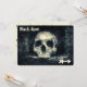 White skull against the black or dark background. The text Black Spot to the left of the skull. The arrow in the low right corner of a card. The invitation text on the back reads as follows: My compliments, Mister! You must join the Pirates Brotherhood meeting to be shocked by Halloween Horrors at Jolly Roger Bar, 1313 Oak Street, Scareville, Az, 66666, 7 PM 31 OCTOBER 2020. Not sure about a treasure chest, but we will do a big hole in a wine cellar. RSVP to Captain Black Beard by 10/15/20 012-345-6789 | black_beard@pirate.com. Fully customisable Halloween invitation card for anyone. You can change all the images and you can change or delete all the texts. Have fun and Happy Halloween.