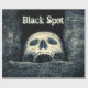 White grinning skull against the black or dark background. The text Black Spot above the skull. One of a kind customisable wrapping paper. You can change the image and you can change or delete the template text. Pirates were presented with a Black Spot to officially pronounce some verdict. Have fun and Happy Halloween.