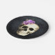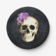 Serve your party guests on this gothic floral skull paper plate featuring a white skull accented with a beautiful purple roses on a black texture background. Perfect for your Halloween Party or Gothic themed events.