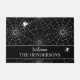 Spooky black and white Halloween door mat featuring spiders and cobwebs. All text is customisable for you to add your own message and family name