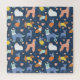 Funny dogs pattern in cute outfits. Lovely lapdog, corgi, terriers, dachshund. Colourful animals in different fashion textured clothes on dark background. Modern print with pets. Hand drawn.