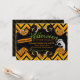 This flat invitation has a Halloween, zigzag background pattern and is overlaid with a vintage panel that holds your party's information. A creepy hand rises from the right side. The words "Halloween", "spooktacular" and "costume party" are pre-printed.