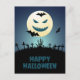 Anyone would love to receive this spooky Happy Halloween postcard featuring a scary graveyard, moon and bats!