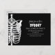 Spooky Skeleton X-Ray design will sure to make your Halloween gathering extra eery. Watch out for ghouls and ghosts. A whimsical drawing of a Halloween skeleton with an X-Ray effect, black and white outlines, and charcoal effects. This design features a Halloween party spooky scary fun with a QR code website online, an rsvp scan scannable URL, a creepy black and white skeleton, a cute whimsical funny cute, a Halloween budget postcard invitation, a whimsical typography script, handwritten script calligraphy, a scary Halloween skeleton spine, a modern sketch drawing cartoon