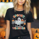Get into the Halloween spirit with this spooky violin teacher t-shirt featuring a retro chequered pattern, a cute ghost playing the violin, pumpkins, and music notes. It’s the perfect gift for music teachers who want to bring some Halloween fun to their lessons.