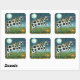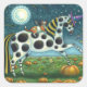 HALLOWEEN SPOTTED PONY & BAT CAT Whimsical Horse Square Sticker