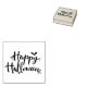 This stamp is of wood and features a Happy Halloween spider webs graphic print.