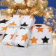Add a magical touch to your Halloween with this bright and cherry pattern of black stars and two shades of orange stars againast a white background.
