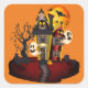 Halloween sticker shown with a spooky haunted house scene print.