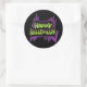 Round shape sticker shown in black with a Happy Halloween print. Customise this item or buy as is.