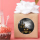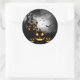 Large round sticker shown with a Halloween haunting pumpkins print.