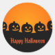 Round sticker shown with a halloween pumpkins print. Customise this item or buy as is.