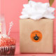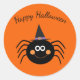 Small round shape sticker shown with a graphic print of a cute Halloween spider.