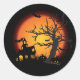 Halloween sticker shown with a scary haunted scene print.