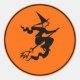 Round sticker is shown with a Halloween witch print.